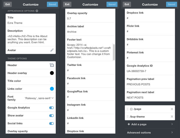 - Custom Header: image, overlay color, overlay opacity, text color;